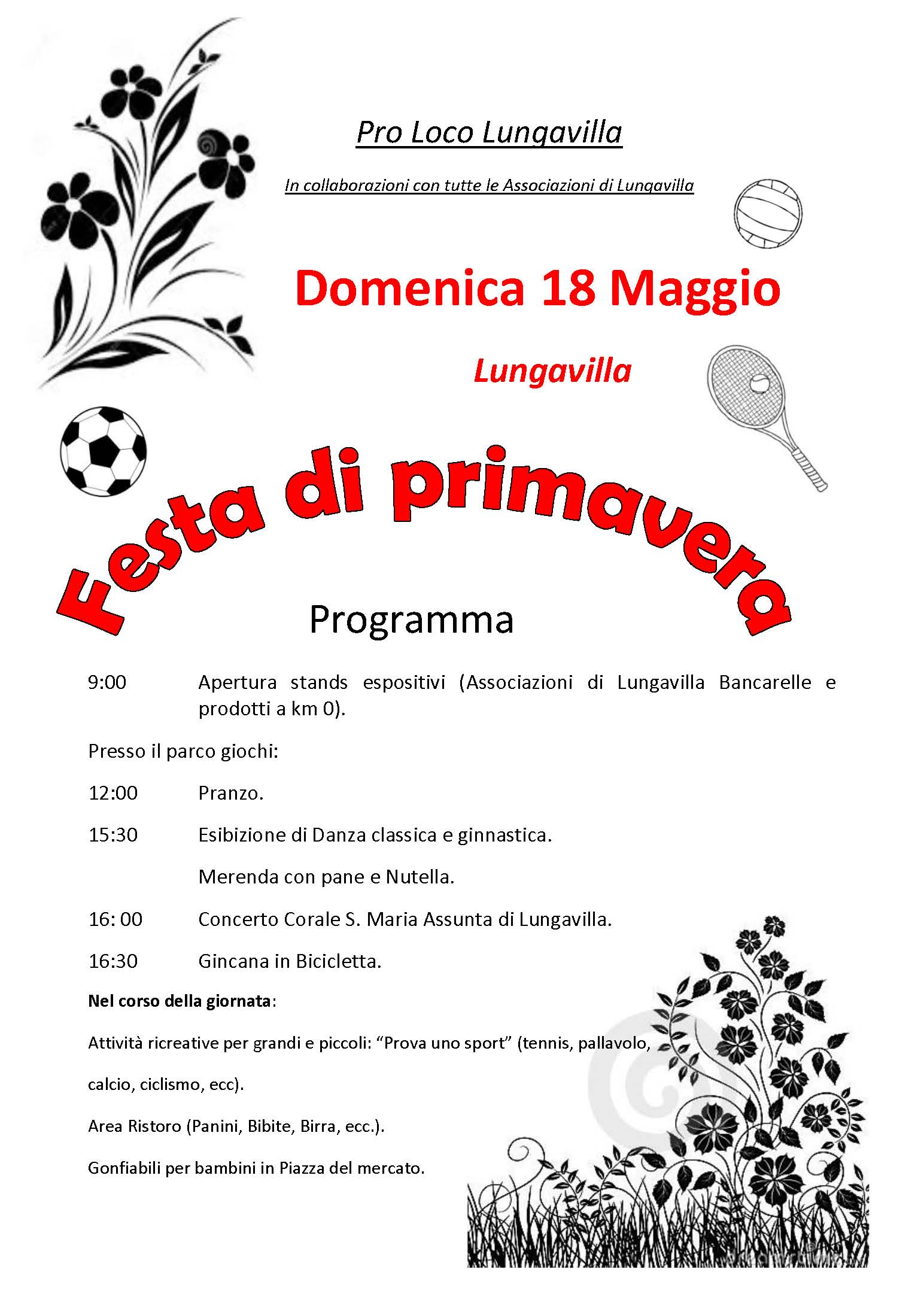 La Pro Loco in collaborazione con tutte le associazioni di Lungavilla organizza per domenica 18 maggio la "Festa di primavera".