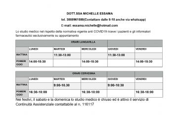 Ambulatorio Dott.ssa Buratti: nuovi orari