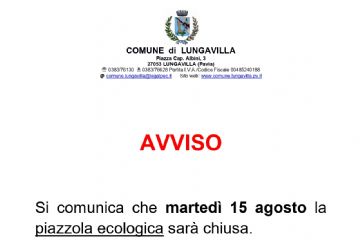 Si comunica che gli Uffici Comunali rimarranno chiusi lunedì 14 e mercoledì 16 agosto per il Santo Patrono.