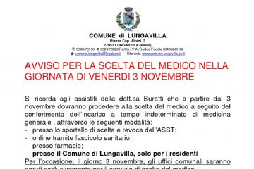 Leggi tuttoAvviso per la scelta del medico nella giornata di Venerdi 3 Novembre